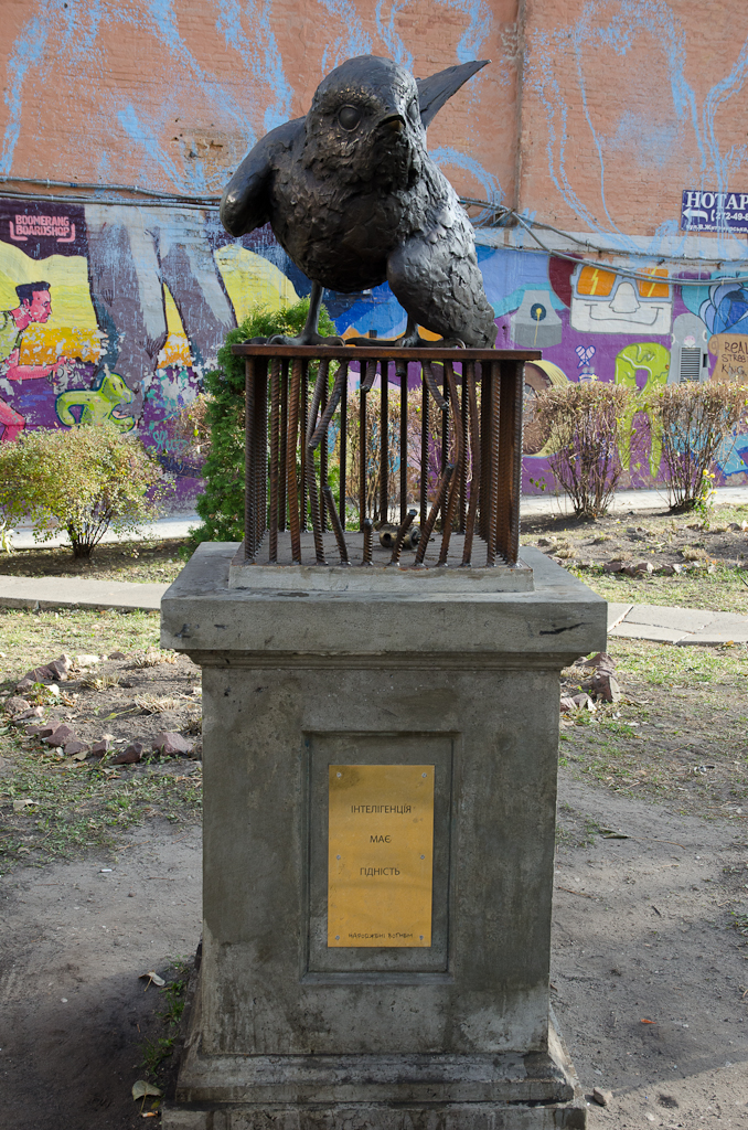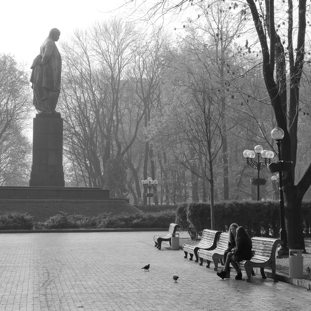 - Новий пам’ятник в парку Шевченко. Зроблений з нержавіючої сталі, тому корисний для любителів селфі.