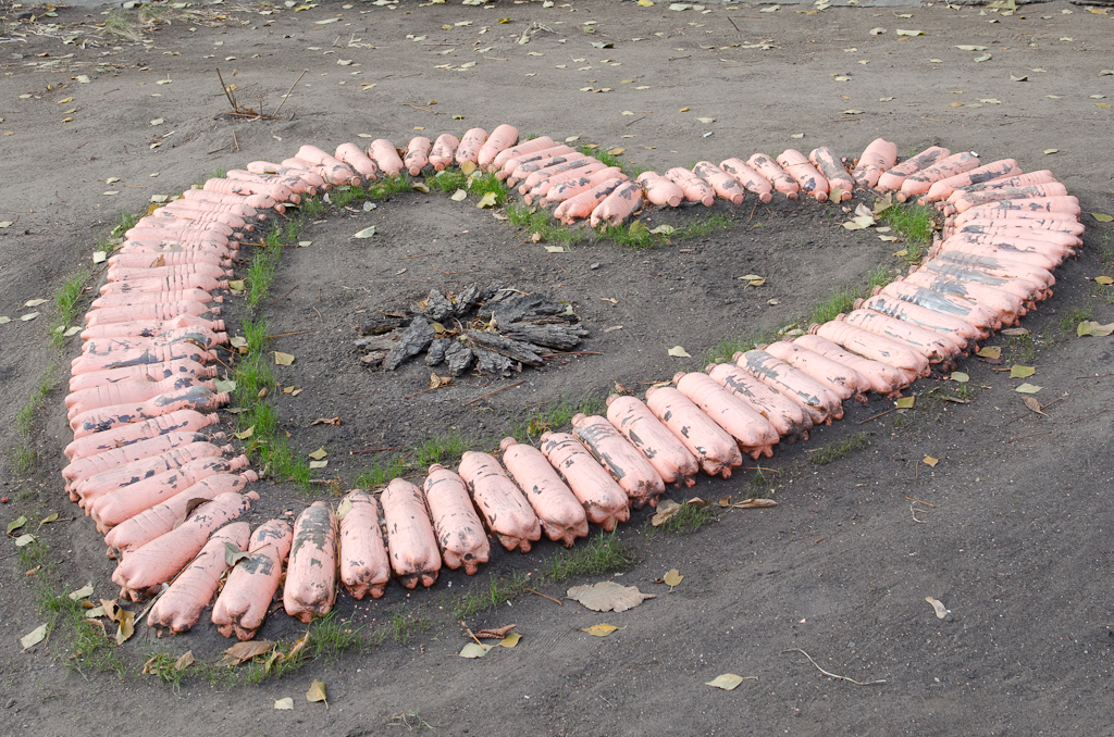 - ПЕТ пляшки можна використати і як будівельний матеріал для клумби.